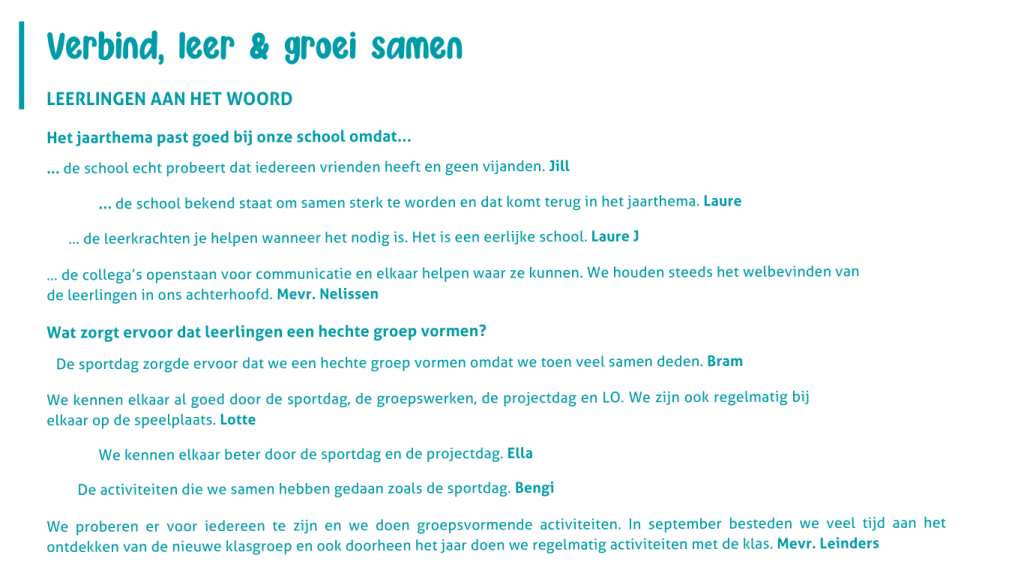 Leerlingen aan het woord
