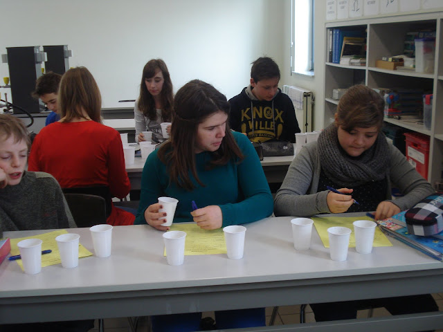 Naar aanleiding van wereldwaterdag werden de leerlingen van BVL echte wetenschappers. Ze deden allerlei proeven met water. Zo leerden ze een prop onder water droog te houden, een ei te laten drijven, peper te doen wegzwemmen, … Zelfs hun eigen ‘lavalamp’ hebben ze gemaakt. Dit alles hebben ze zelfstandig gedaan a.d.h.v. werkblaadjes en verbetersleutels. Het opruimen van het materiaal hoort natuurlijk ook bij het werk van een goede wetenschapper. De enthousiaste leerlingen vonden het een leerrijke en fijne les. De leerlingen van 1B deden een onderzoek naar het beste drinkwater. Ze brachten allemaal een flesje leidingwater van bij hun thuis mee. Na de kleur, de geur en de smaak van het water zorgvuldig te hebben onderzocht, is er een winnaar uit de bus gekomen. Het leidingwater van Daan is officieel uitgeroepen tot ‘beste drinkwater van 1Ba’. |